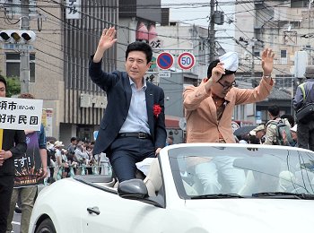 そろそろパレード見物の場所を確保しなくては…と、バラ公園方向に向かう事となりました(^.-)☆