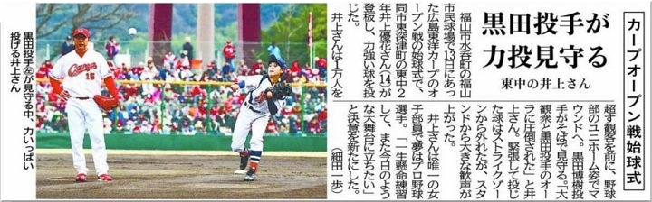 翌日の中国新聞朝刊の記事によりますと、東中2年生の井上優花san。