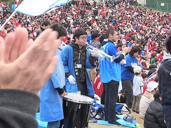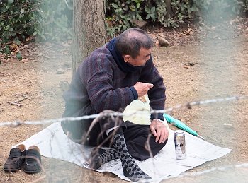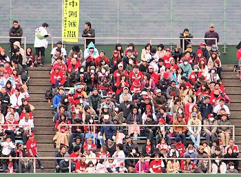試合開始間もなく、皆さんカープの応援に盛り上がっておりましたけど、何気なく後方の陸上競技場方向に眼を移しますと、新聞紙を広げて独り寂しく缶ビールを手にされました男性が…