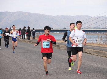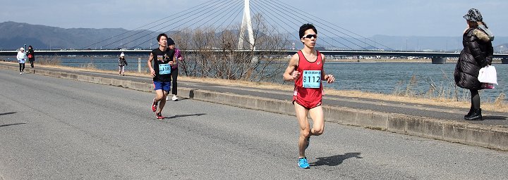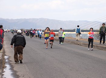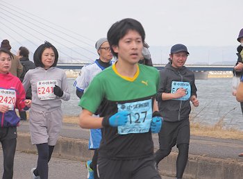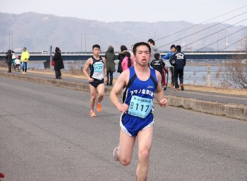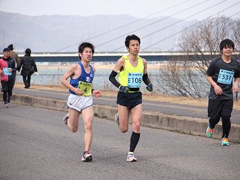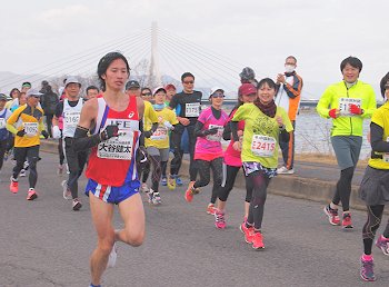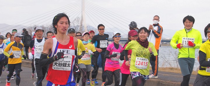 ズームを効かせてゼッケンを確認致しますと、うん、うん、やっぱりJFEスチール競争部の大谷健太選手がトップでありました。
