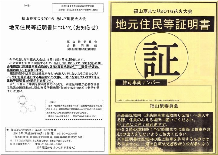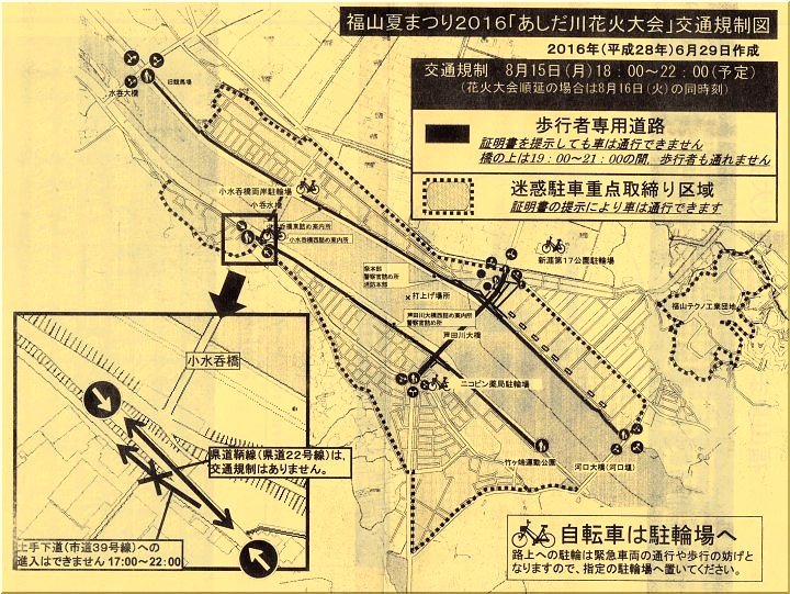 昨日でしたか…自治会の回覧で「福山夏まつり2016『あしだ川花火大会』」の交通規制のご案内が廻って来ておりました(^.-)☆