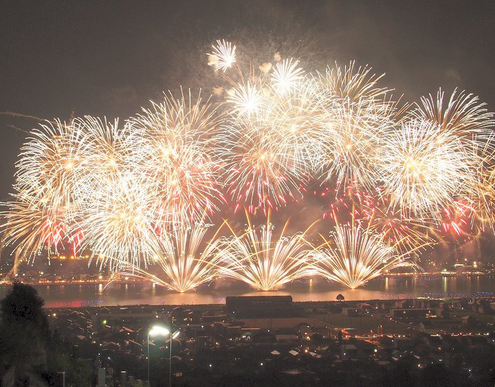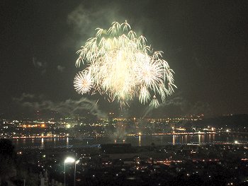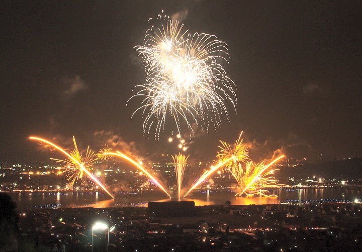 河川敷からの花火見物は間近で大変キレイなんではありますが、あまりにも近すぎて(^-^;