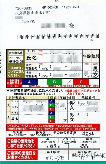 出発日は、3/27(日)のみを希望で出しておきました。