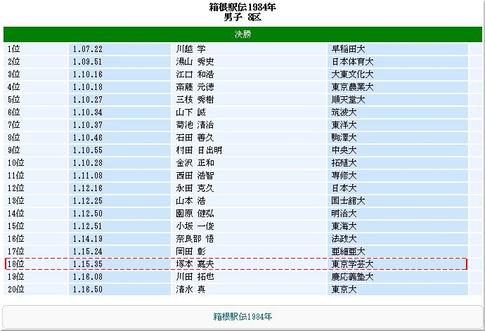 この方(画像左上)は、東京学芸大2年生当時、第60回大会(昭和59年・1984年)で第8区を走られましたTsanなのであります。