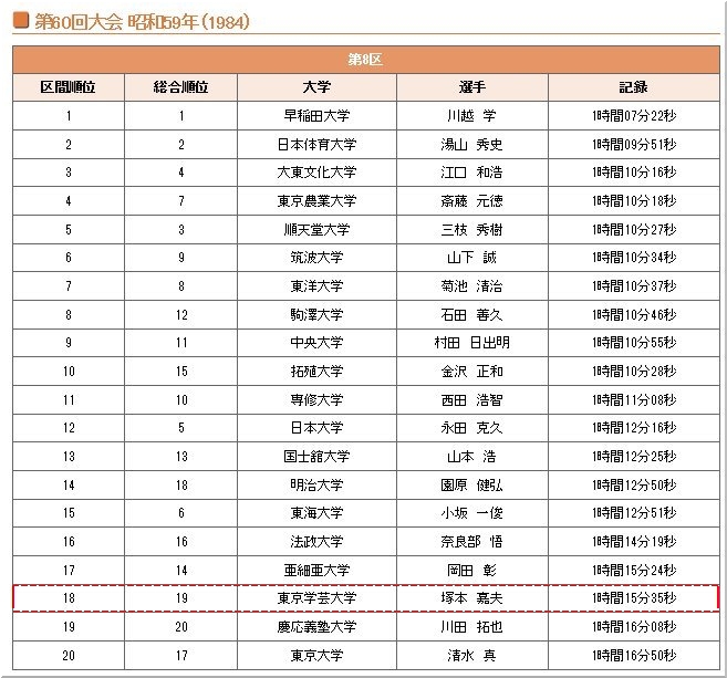 この大会まで何度か箱根駅伝には出場しています東京学芸大でしたけど、この大会を最後に久しく出場には無縁となっていますようですけど…