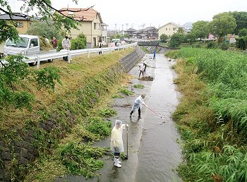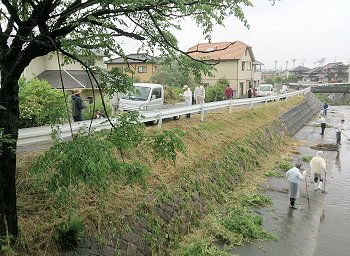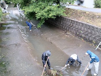 挿入の画像は、その際に、水呑川川底の土砂を清掃しておられます方々を撮りましたものなんです(^.-)☆