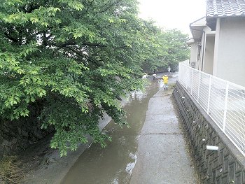 9月の場合は、水呑川土手の草刈りは福山市で実施して頂きますから、GONsanはベタ鍬持参で水呑川の川底清掃の方に廻ります。
