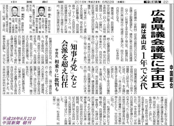 得票数をみましても中四国随一の得票ですから、政治は力学…この考え方からいきますと、議長就任も間近とばかり思っておりましたのに…