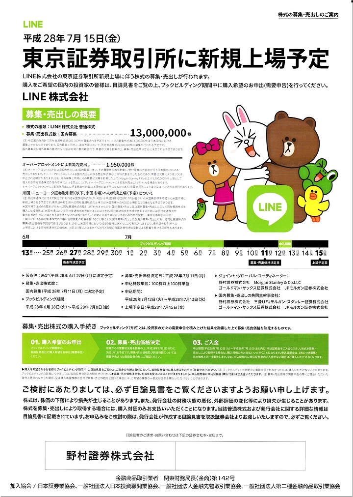 もぅ随分前に野村證券sanから届いておりました郵便物…暫く放っておりまして本日開封しますと、ふん、ふん、LINE鰍フ上場のご案内。