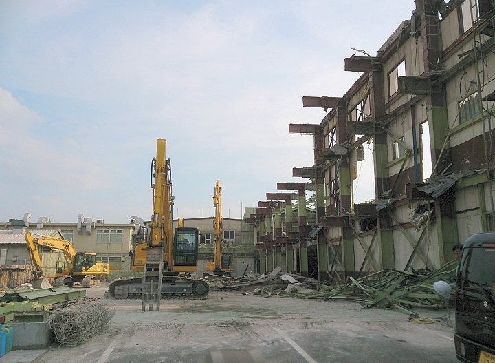 先日、お客様ご訪問時の手土産を求めて福山市曙町の虎屋本舗sanを訪れますと、市道を挟んで向かい側の建物解体工事が進行しておりました。