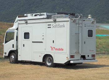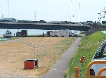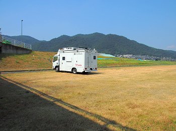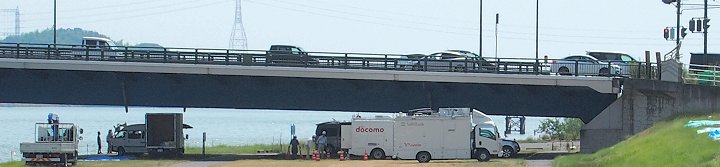 河川敷に到着と同時にまず眼に入りましたのが、SoftBankの取材車と言うか中継車。