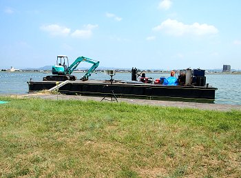 勿論、台船上では10名ばかりの方々がお忙しそうに作業中。