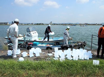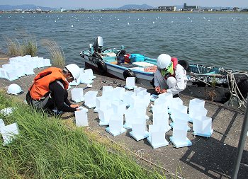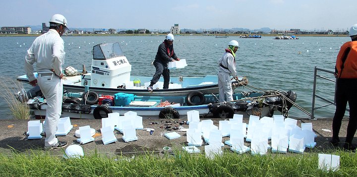 既に川面には無数の容器が配置されておりましたけど、今、整備しておられますのも今から川面にと運ばれるのでしょうねぇ〜