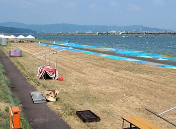対岸の西新涯町側でも場所取りの皆様が河川敷に(^.-)☆