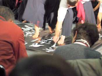 こぅした書道パフォーマンスは、演じておられる方達も勿論楽しいでしょうけど、拝見しています者にとりましても仲々楽しいものですねぇ(^.-)☆