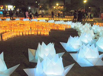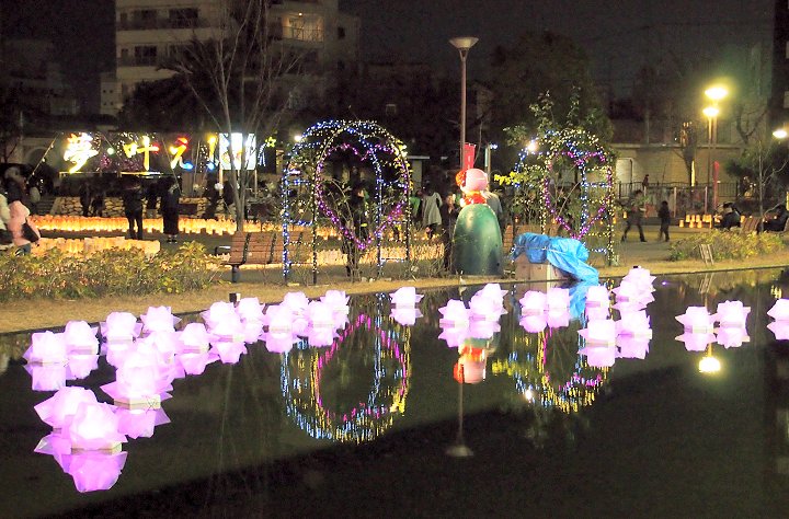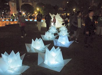 「灯りの書道展」を拝見しますと、また中央公園広場へと降りる事となりました。
