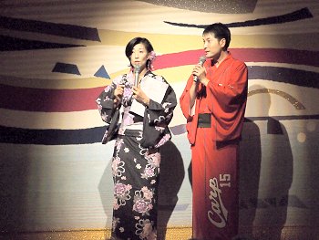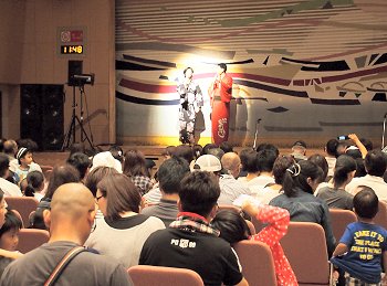 いゃいゃ実にタイミング良く、ステージ上では「あーくん」と「蟹藤san」がトーク中。頂いたプログラムに眼を向けますと、今から「ふれあいステージ」が始まりますようですネ。