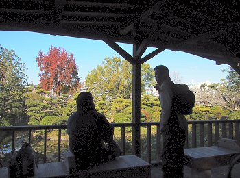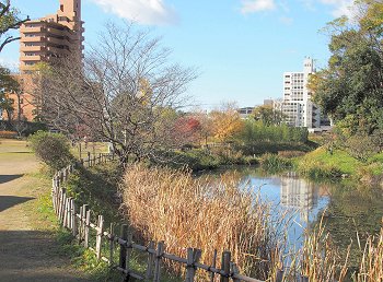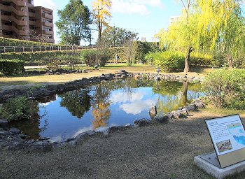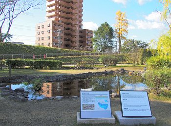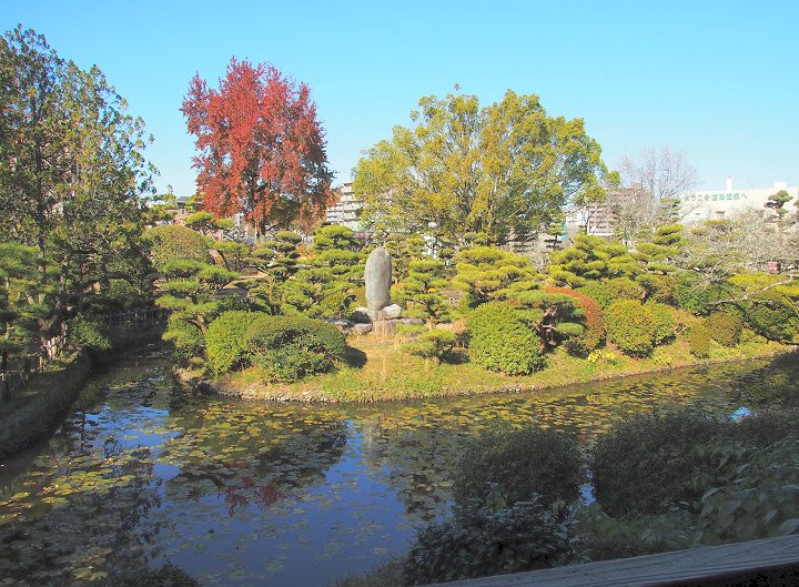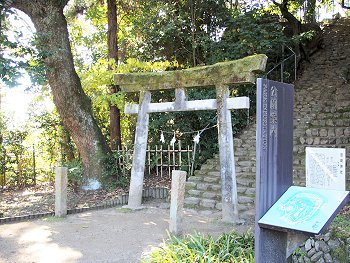 道後公園=湯月城跡は、建武年間(1334〜41)河野通盛が築城した。当時、庭の一隅に小祠を建てたのが始まりだという。神社が庭の端にあるから「庭先神社」、これが訛って「岩崎神社」のいうのが社号の起こりという。