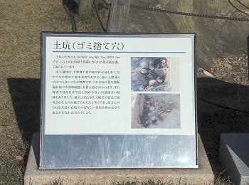 それから、武家屋敷方向にと進んで行きますと、今度は「土坑(ゴミ捨て穴)」表示板が(^.-)☆