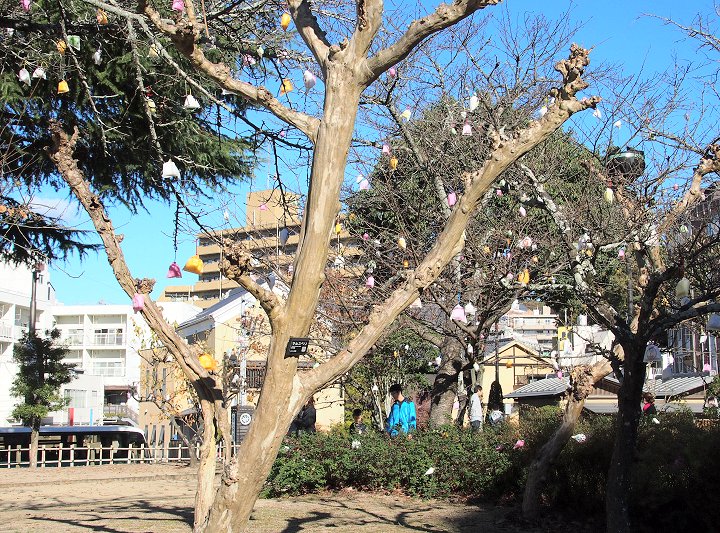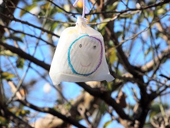 暫くノンビリと進んで行きますと、樹木に無数の飾りらしきモノが…これは何なのでしょうねぇ〜よくよく見ますと顔が描かれておりました。