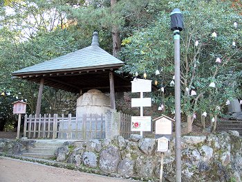 天平勝宝年間(749〜757)に作られ、正応元年(1288)、一遍上人の書で「南無阿弥陀仏」と彫られてあります。また、周りの文字は亨禄4年(1531)に河野通直が天徳寺徳応禅師の温泉記を彫らせたものといいます。