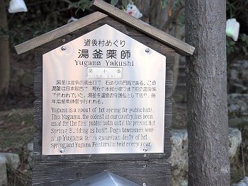 湯釜薬師は明治27年に伊佐庭如矢と坂本又八郎が本館を作るまで、養生湯で使われていましたが、新築なったのを期に引退。昭和25年に今の場所に移り、屋根をつけ、湯釜薬師として祀った、という訳です。