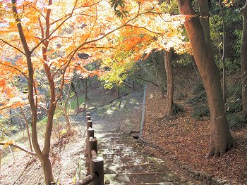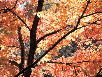 そしてまた歩行続行。そうしますと今度はこの場所のみ紅葉が(^_^)v 日差しに映えた紅葉が実にキレイ(^-^)