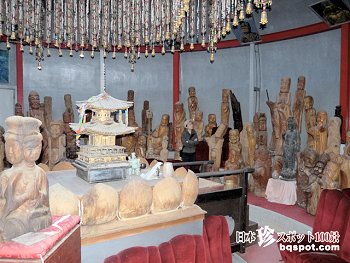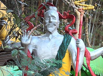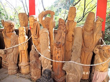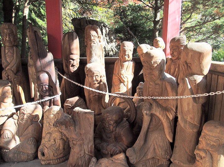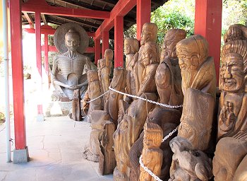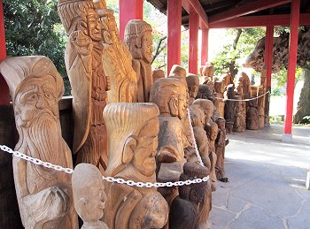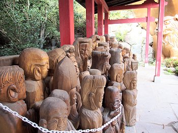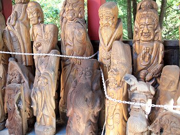 マントラ塔前の広場を取り囲むようにズラッと並びます多数の木像…