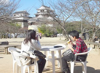 天守より降りて来ますと、本丸広場でソフトクリームを食べながら暫し休憩となりましたGONsan。