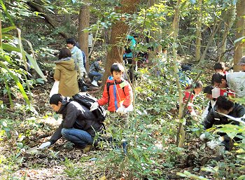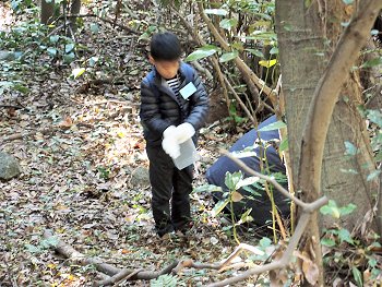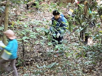 二之丸史跡庭園近くまで下って来ますと、10数名の小学生の皆様が、何やら野外授業の採取中。