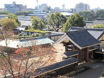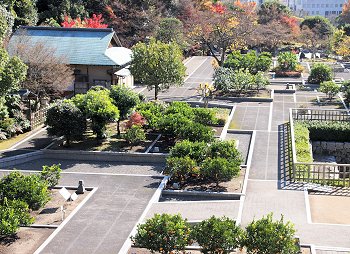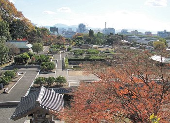 黒門口登城道から見下ろしますと、庭園のほぼ全景が見渡せます。
