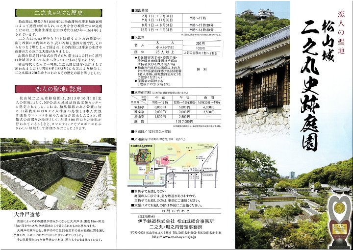 松山城二之丸史跡庭園は、2013年10月1日「恋人の聖地」として、NPO法人地域活性化支援センターから認定を受けました。