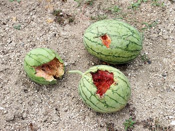ら、昨日でしたか…「あのスイカの二つに、穴をあけられていた…」と嫁さん。