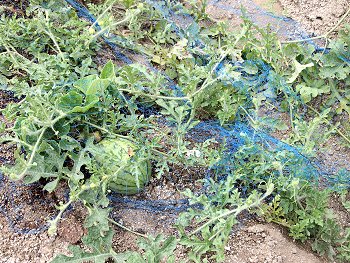 この畑の別の場所に勿論スイカも植えておりまして、既に5〜6個戴いております(^.-)☆