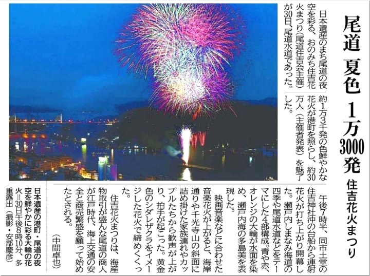 ら、今日の朝刊に住吉花火の記事掲載が(^-^)