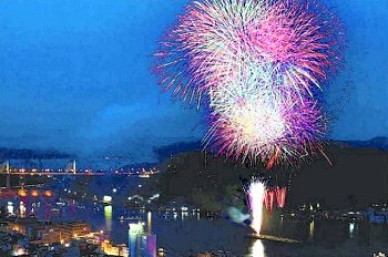 岡山県笠岡市の花火大会で、8号玉の打ち上げが見られる。花火見物は、笠岡港を見下ろすことができる古城山公園からがおすすめ。早打ちスターマインや、ラストの水中花火には目を見張るものがある。