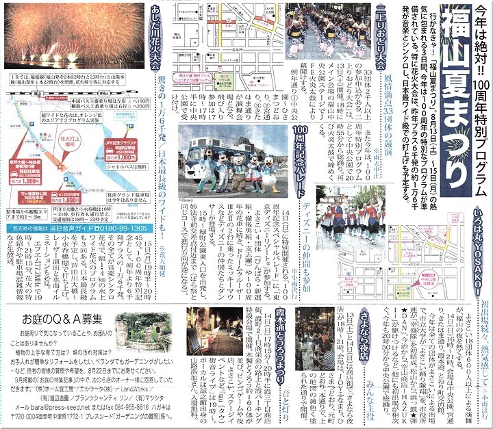 ■福山夏まつり…今年は「100周年特別プログラム」とかで楽しみですネ(^.-)☆