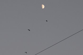それにしましても不思議なのは、このカラスsan達は、翌朝もこぅして大群でどちらかに出掛けているのでしょうけど、毎日何処へ出掛け、出先では何していますのでしょうねぇ〜出来る事なら、一度、一緒に出掛け、終日共に過ごしジッと観察していたい衝動に駆られますよ。それに、毎日行き来しますのも大変でしょうから、出掛ける先をネグラにすれば良いのに…とも思ってしまいます。