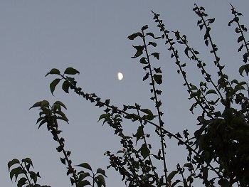 雲一つありません上空に筋を引いて通過の飛行機もそぅですけど、半月のお月様も大変キレイでありましたネ(^-^)//"