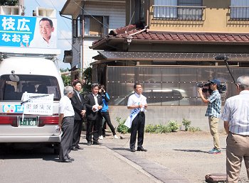 が、枝広候補取り巻きの応援団のカメラマンのマナーが実に良くありません。