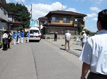 聴取の皆様の間を忙しく移動しておられまして、後方の確認もせずに相変わらず候補を追っての後ずさり。そして私と激しく接触です。