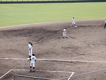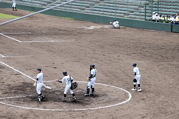 第一試合とは違って、この試合は3回まで投手戦を思わせます展開となりましたけど、4回表の加計芸北高校。