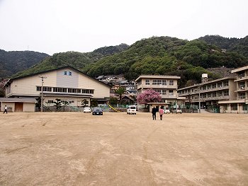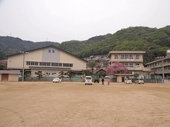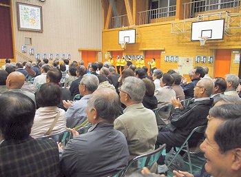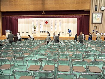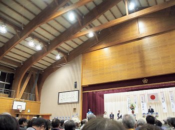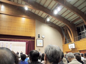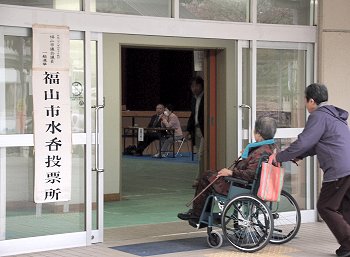 福山市水呑投票所は、個人演説会が行われました水呑小学校体育館。