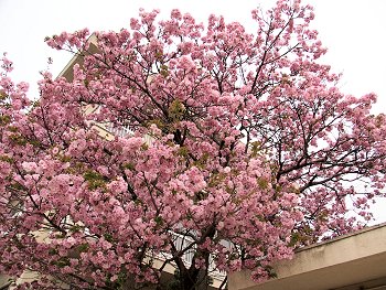 これは、4/10(日)の福山市議選投票日に、投票所であります水呑小学校体育館近くのサクラの景観です(^.-)☆