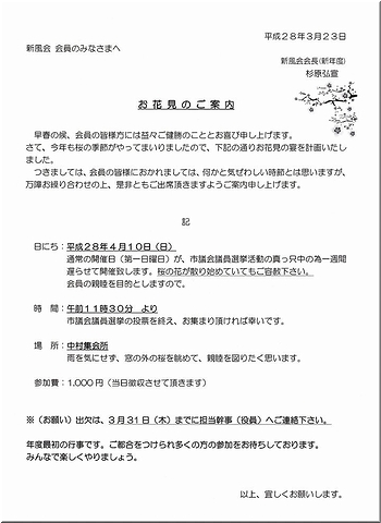 まぁそのような事はともかく、遅ればせながら新風会の皆様との花見開催となりました(^-^)//"