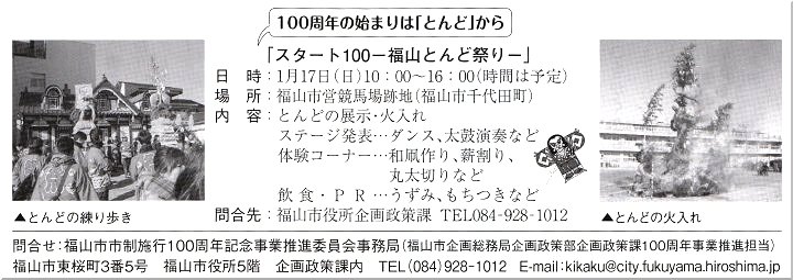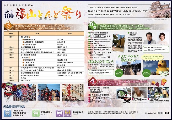 先月・1/17(日)は、福山市制100周年記念事業のスタートとして「福山とんど祭り2016」の開催でした(^.-)☆