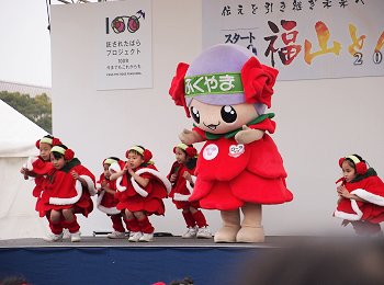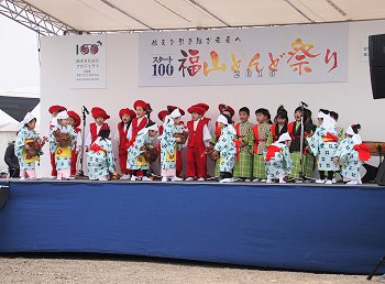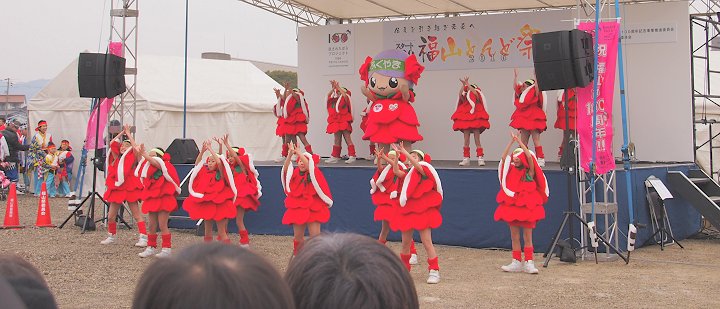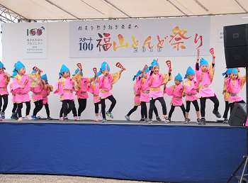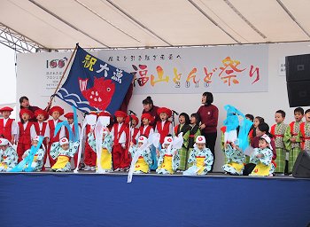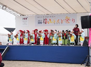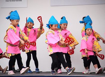 ステージのプログラムは進行して行きまして、ローラちゃん達の後は「ふくのやまよさこい実行委員会:福の山音頭総踊り」ですネ(^.-)☆