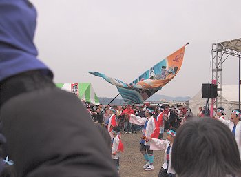 揚げておられますのは、この会場で作成しました手作り凧。