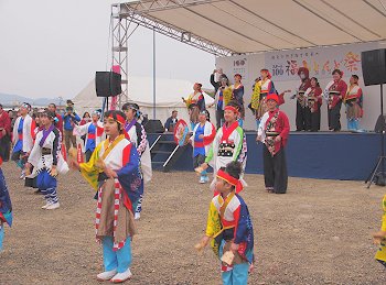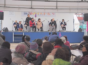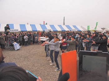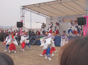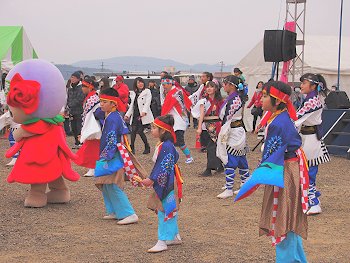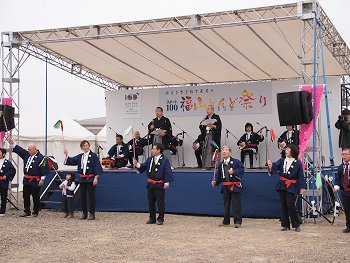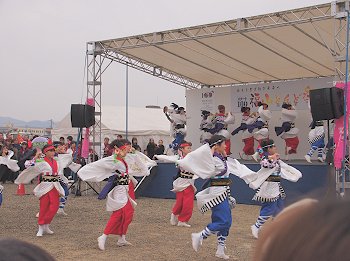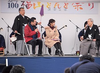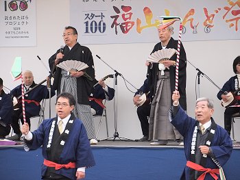 ふくのやまよさこい実行委員会の「福の山音頭総踊り」が終わりますと、次は福山市古典芸能保存会の皆様の「とんどの紹介・とんど音頭・練り歩き」となりました(^.-)☆