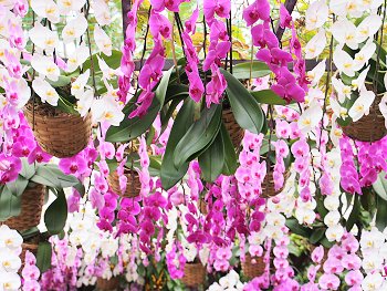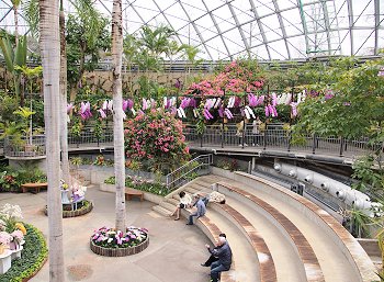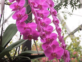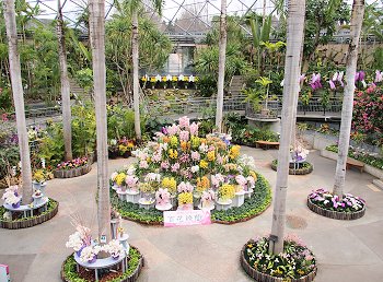 室内の温度は冬でも約20度に保たれ、熱帯・亜熱帯の植物が生い茂るなか、1,000株以上の洋ラン、珍しい観葉植物が園内を華やかに彩っています。
